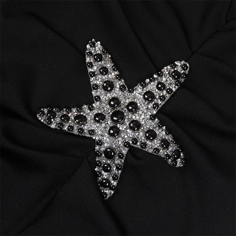 Get ready to look all kinds of glam in our Aya black bandage dress. Featuring a starfish design and mesh detailing.